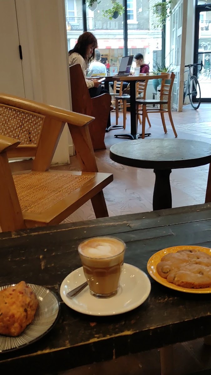 Perfectly alright café. Seems ideal for settling down and working on something, as they have multiple tables available for individual people. The place is cozy and the staff is unbelievably kind, with one of the baristas adding to the atmosphere with her diligent maintenance of the houseplants decorating the establishment. Funnily, the weakest aspect is the food. The coffee is perfectly acceptable, but nothing special, while the blueberry muffin I had had a pleasant texture, but was lacking in flavour. I recommend the place if you want to go somewhere to read, have a nice conversation, or work on a project *alongside* a drink or treat of your choice, but it's not worth going for the coffee alone.
